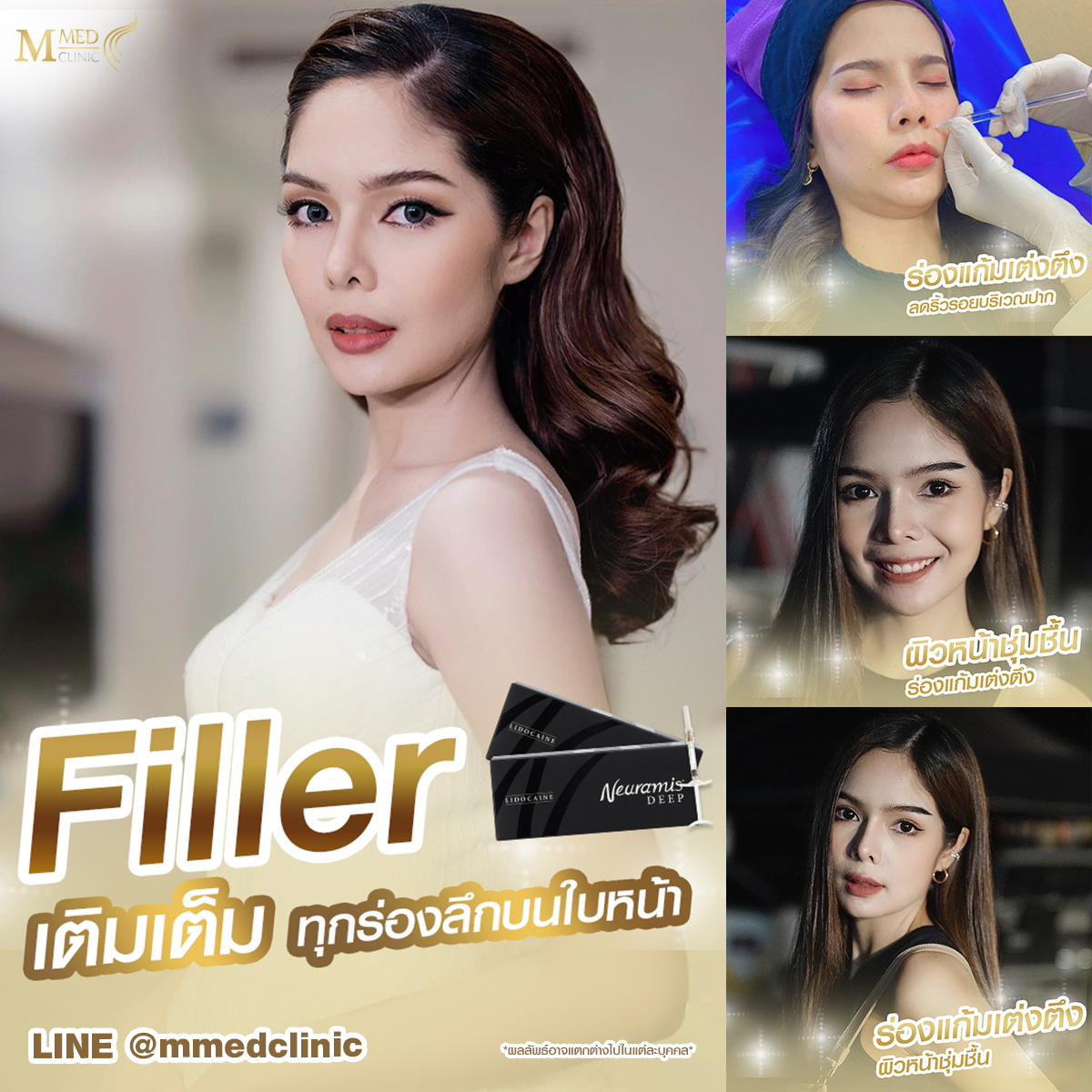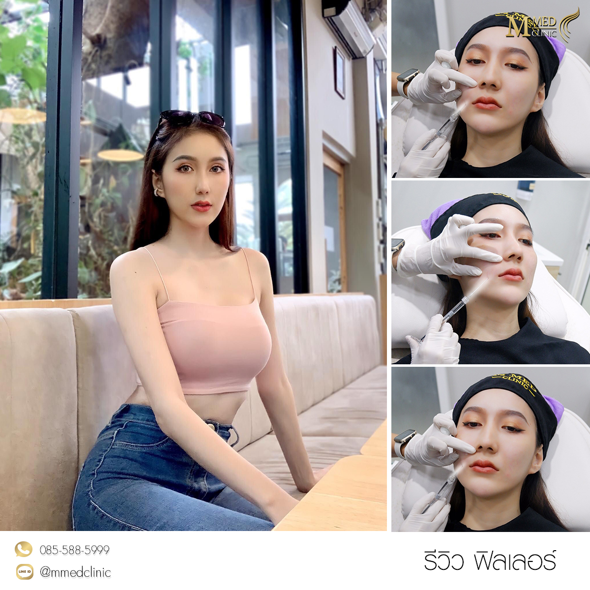 ฟิลเลอร์จะทำให้ผิวหน้ากลับมาเรียบเนียน เต่งตึง ใบหน้าอ่อนเยาว์ลง บวกกับคุณสมบัติอุ้มน้ำของฟิลเลอร์